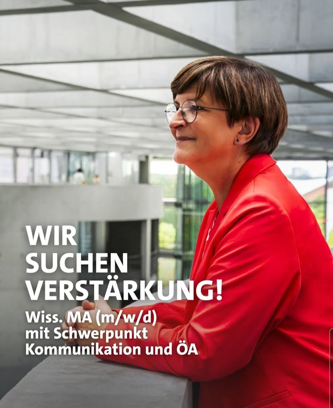 Bitte sende Deine Bewerbungsunterlagen bis zum 26. Januar 2026 mit Angaben zu Eintrittstermin, zeitlichen Kapazitäten und Gehaltsvorstellung an saskia.esken@bundestag.de.